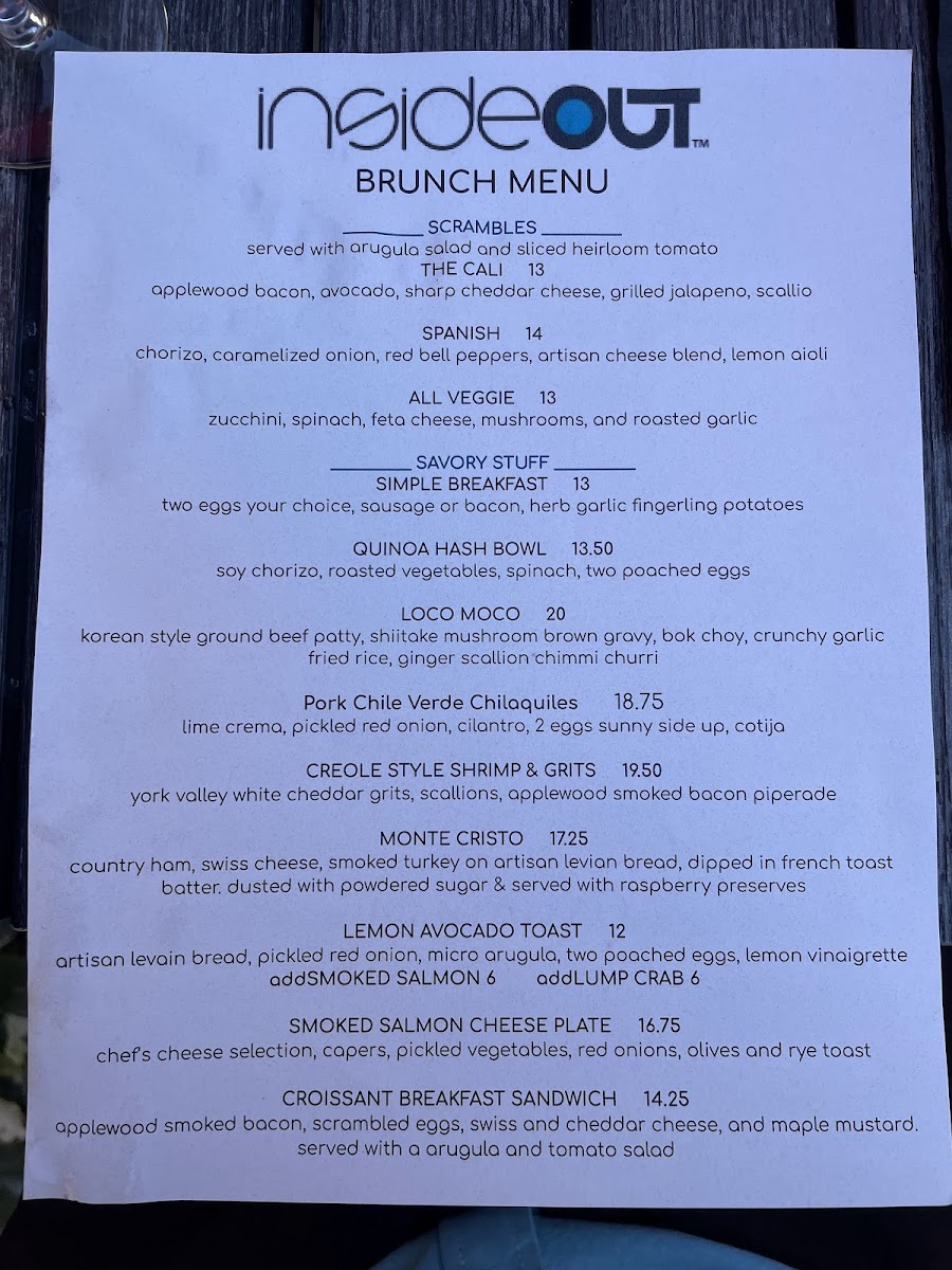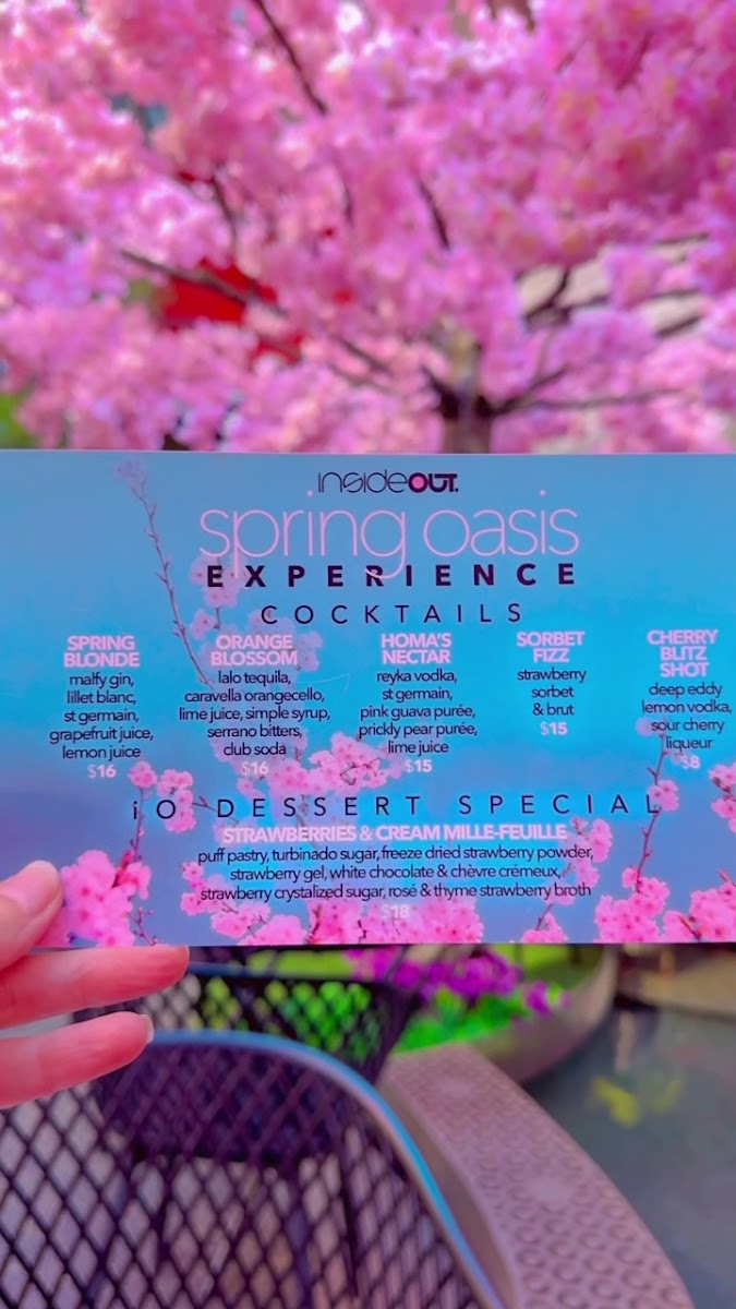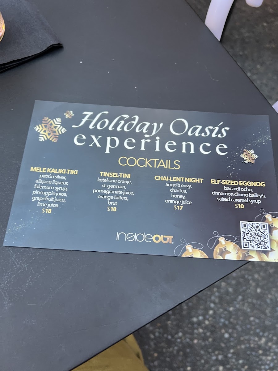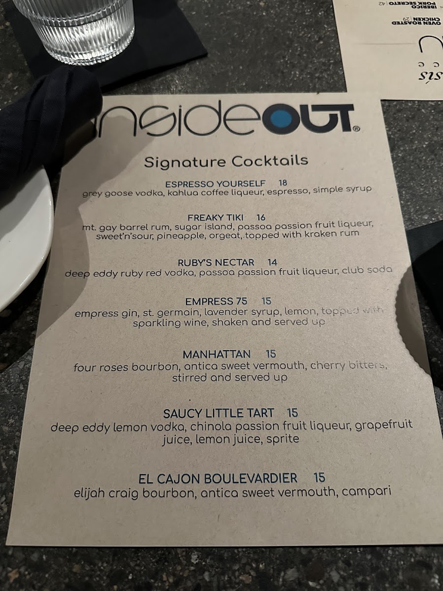 Customer experiences at insideOUT highlight the restaurant's commitment to top-notch service and memorable moments. One satisfied diner, Nicole, raved about the warmth and attentiveness of their server, Marshall, who transformed their brunch into a personalized delight. The communal vibe is enhanced by another visitor, Elka, who noted the friendly ambiance and delicious cocktails that made for special birthday celebrations among friends.