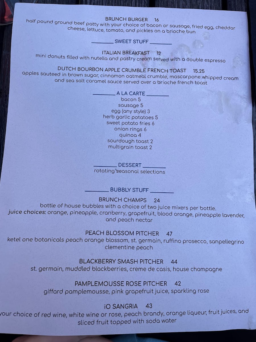 The menu boasts an impressive selection that caters to a variety of palates. For those seeking a substantial brunch experience, the Australian Hot Stone is a must-try. This dish features succulent filet cooked to perfection, accompanied by eggs, chimichurri butter, and a choice of crispy baby reds or grits, all for $45.00. If you prefer something more traditional, the Simple Breakfast with eggs, sausage or bacon, and herbed crispy red potatoes at $13.50 is sure to satisfy.